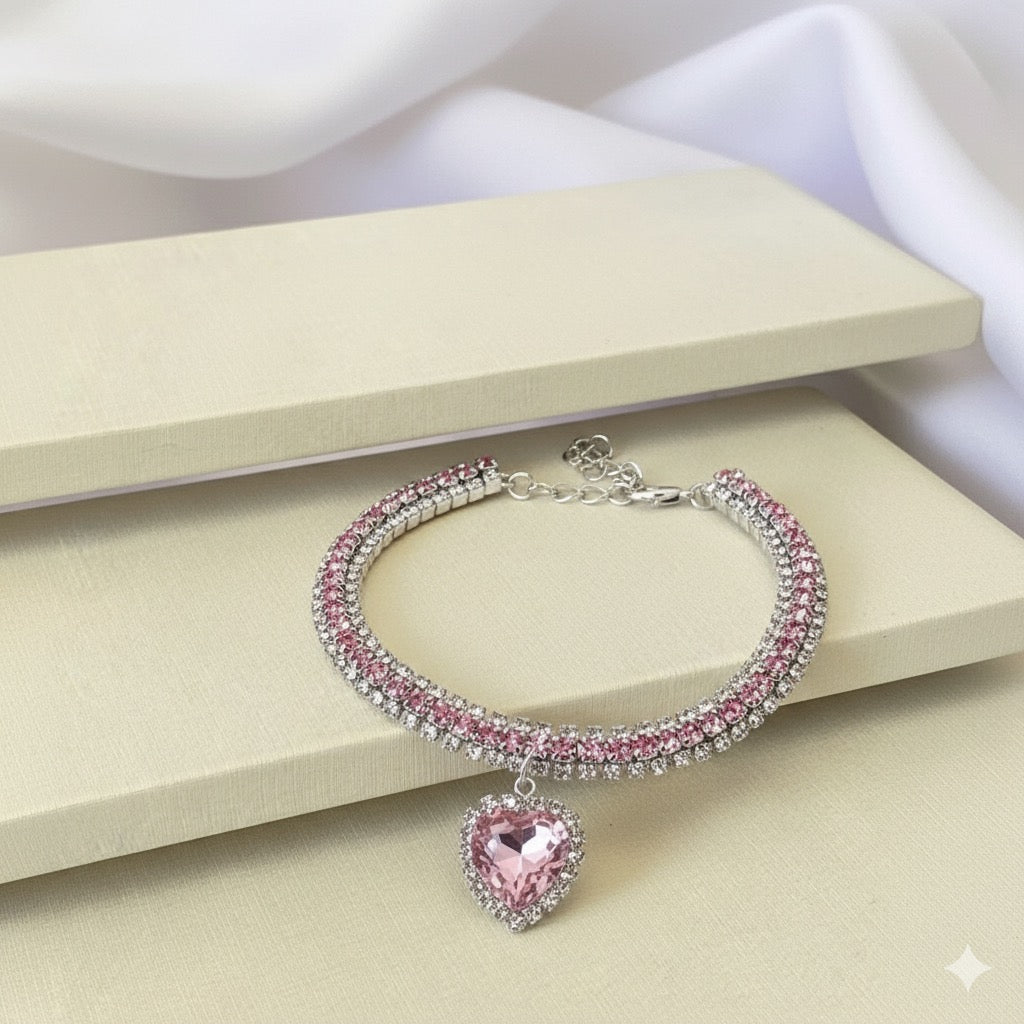 Deixe seu pet ainda mais estiloso com este colar encantador! Ideal para cães e gatos, o acessório combina beleza e conforto em um único produto. Com acabamento delicado e um lindo pingente em formato de coração com strass, ele é perfeito tanto para graças especiais quanto para o dia a dia.