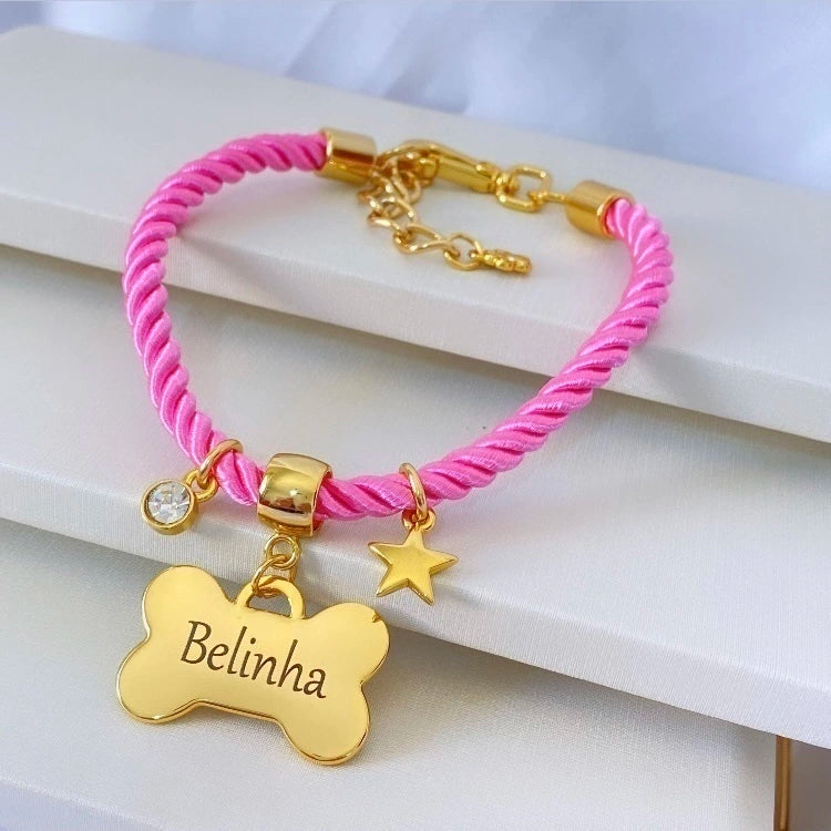 Encante com moda! A Coleira Bele Trançada combina sofisticação e segurança para seu pet. Feita com material premium de toque macio e brilho acetinado, possui fecho ajustável dourado e pingente personalizado em formato de ossinho. Um verdadeiro recurso de destaque para quem trata seu animal de estimação como parte da família.